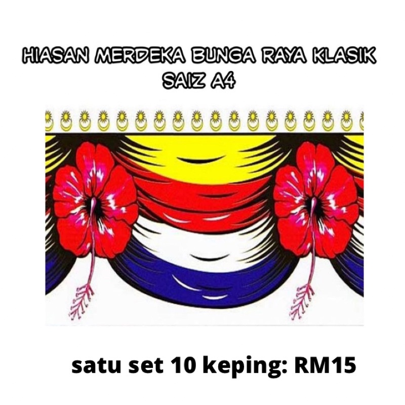 bendera hiasan Merdeka Bunga raya klasik saiz A4 satu set 10 keping