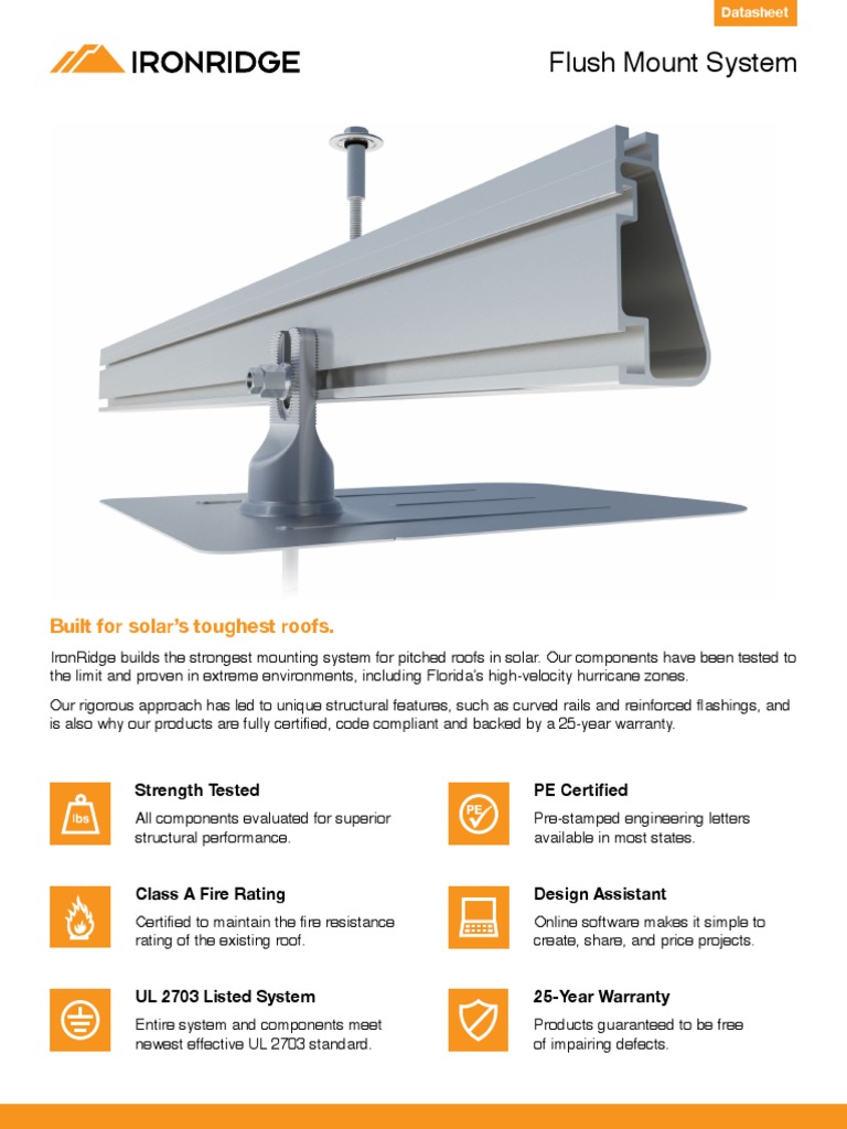 Datasheet flush mount system built for solar’s toughest roofs. Ironridge builds the strongest roof mounting system in solar. Every component has been tested to the limit and. Built for solar’s toughest roofs. Ironridge builds the strongest mounting system for pitched roofs in solar.