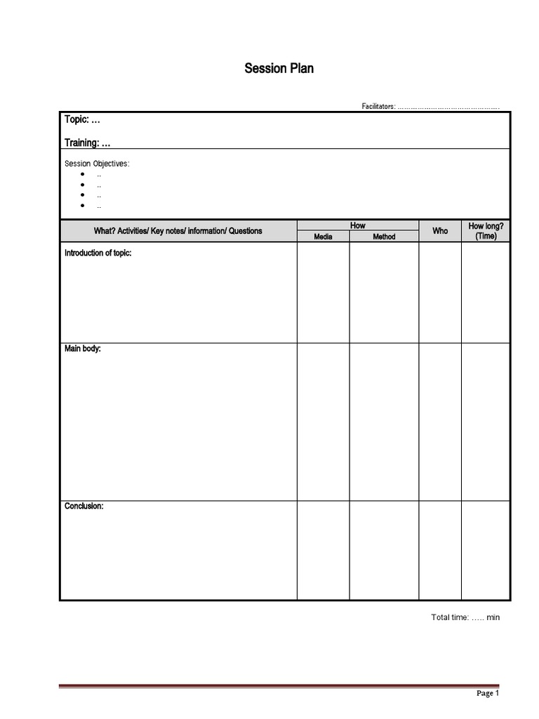 Session Plan Blank PDF